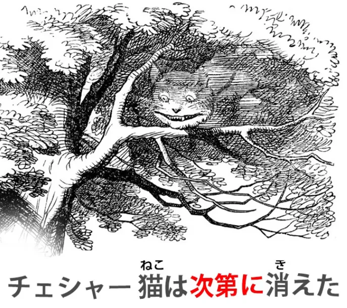 (Cheshire Neko wa shidai ni kieta - Le Chat du Cheshire a disparu graduellement).