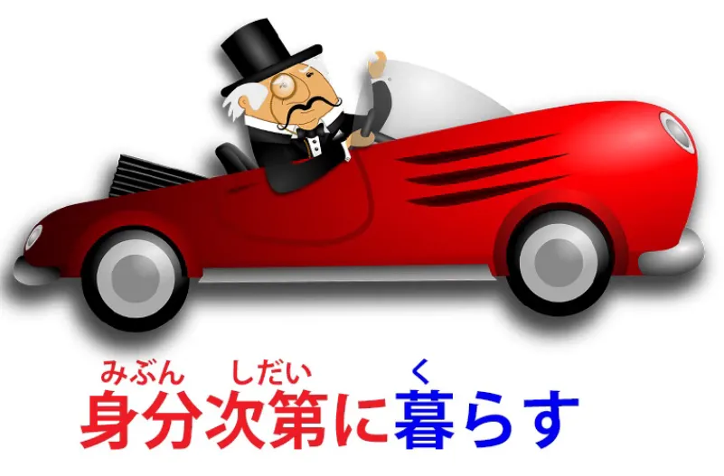 Cependant, si nous utilisons une expression comme 身分**次第**に暮らす