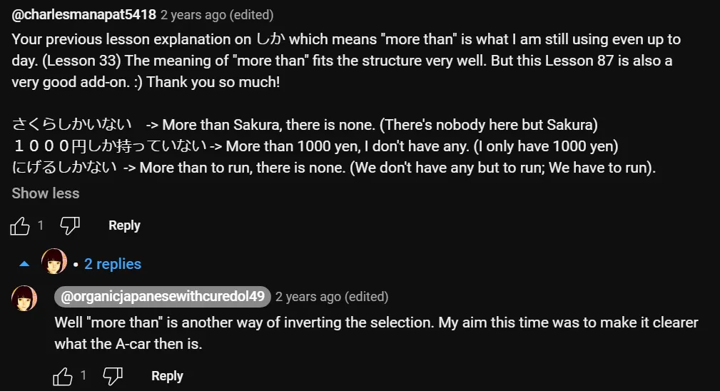 Et je devrais juste ajouter à la fin que il y a une utilisation de しか
