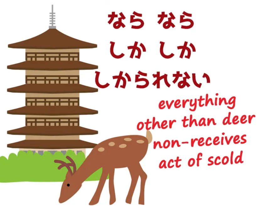 , / 奈良なら鹿しか叱られない (comment cela pourrait être en forme Kanji)