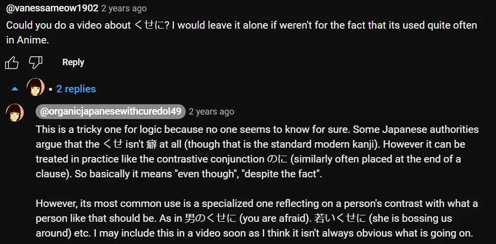 Un divers sur くせに (kuseni - bien que/malgré), pour la leçon complète, elle a fait cette vidéo / Leçon 93