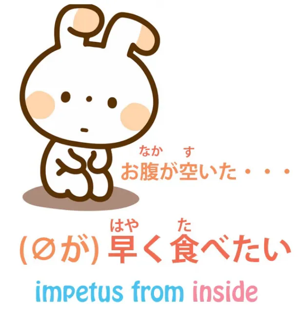 Donc, si nous disons, お腹が空いた、 *(zeroが)* 早く食べたい
