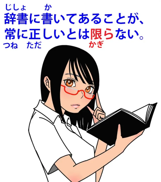 (jisho ni kaite aru koto ga tsune ni tadashii to wa kagiranai).
