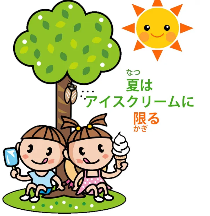 (natsu wa aisukuriimu ni kagiru) — maintenant, vaguement en français, cela signifie En été, la crème glacée **est la meilleure chose**